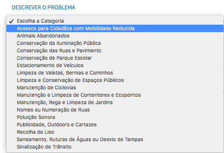 Comunicação, por escrito ou através de fotografias, de situações ou de sugestões de melhoria relativas a espaços públicos, desde iluminação a jardins, passando por veículos abandonados ou pela recolha de eletrodomésticos danificados.